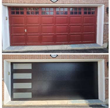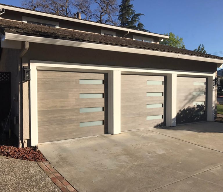 Explore our modern garage door installations in stunning settings.
